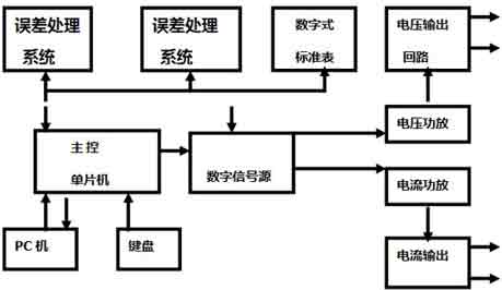電能表檢測裝置由工頻數(shù)字信號源、電壓(電流)功率放大器。電壓(電流)輸出回路、誤差處理系統(tǒng)和操作鍵盤等部分組成。其工作原理的特點(diǎn)是采用多單片微型計(jì)算機(jī)系統(tǒng),通過RS232接口交換各種命令和數(shù)據(jù),各部件互相協(xié)調(diào)而成為一個(gè)統(tǒng)一的整體。電能表檢測裝置原理框圖如下: